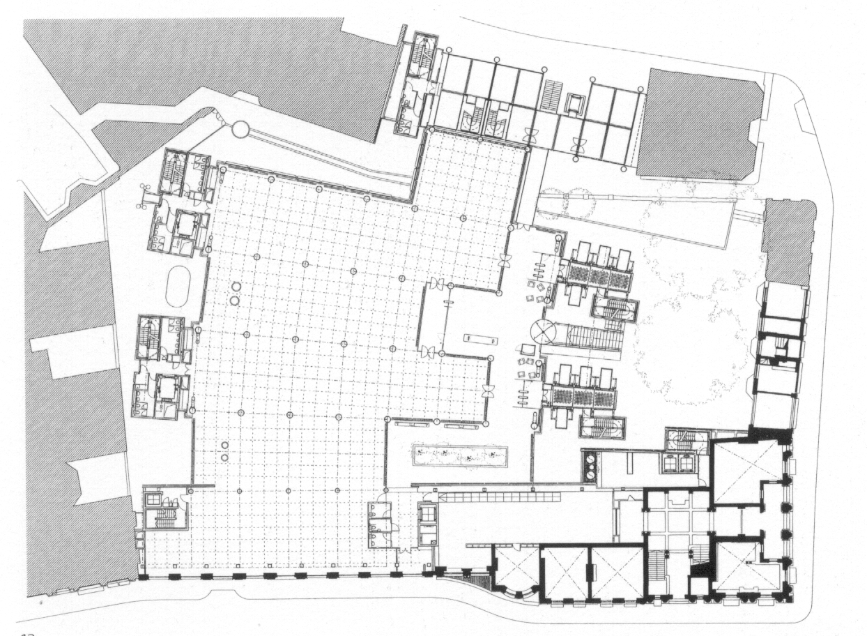 of the 12-storey office building comprises precast concrete beams and floor