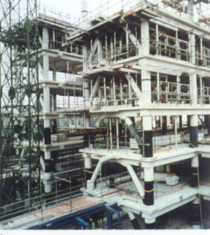 and floor shells) with elements that were filled with in-situ concrete to form a